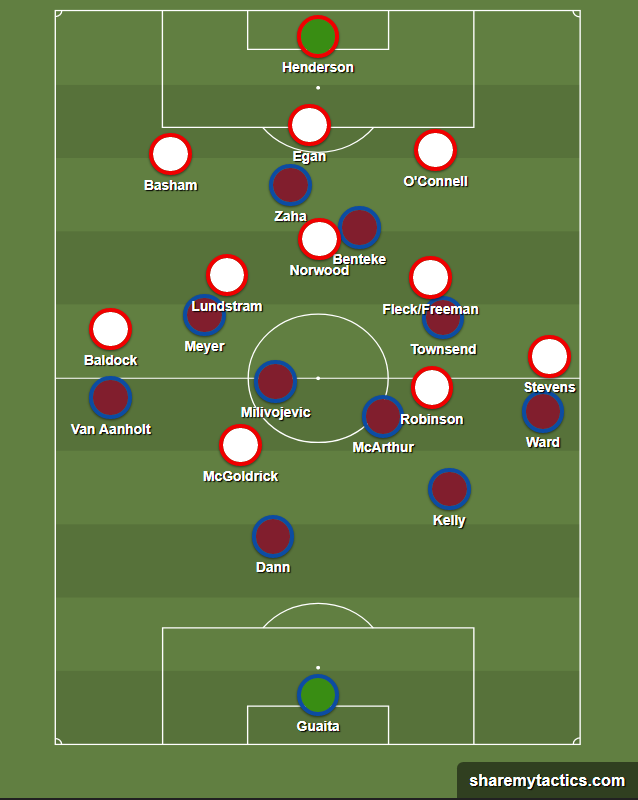Palace were toothless. They completed just three key passes, which is a terrible ratio of one of every 166 passes being a key pass. Max Meyer had no influence between the lines because the Blades defended in a disciplined structure.